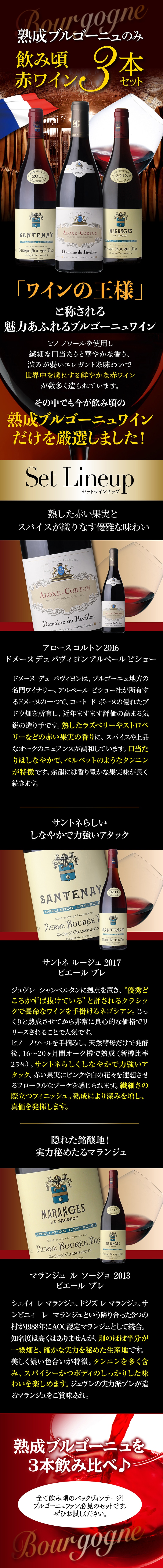 「ワインの王様」と称される魅力あふれるブルゴーニュワイン 熟成ブルゴーニュワインだけを厳選したファン必見のセットです。