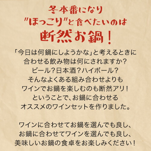 お鍋に合うワインを厳選★美味しいお鍋の食卓をお楽しみください!