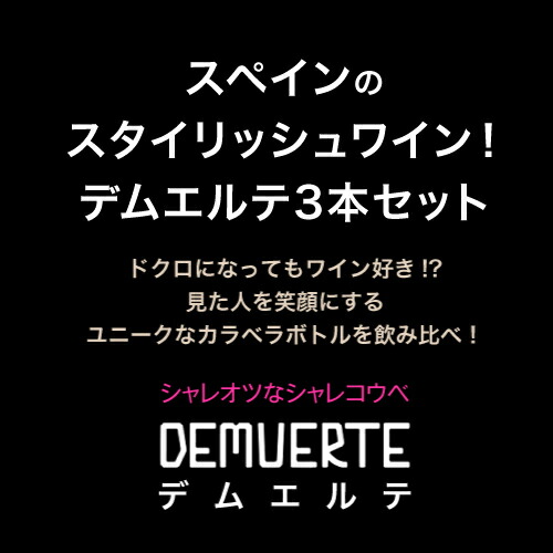ドクロになってもワイン好き?!スペインのスタイリッシュワイン「デムエルテ」!飲んでよし、眺めてよしの3本セットです!