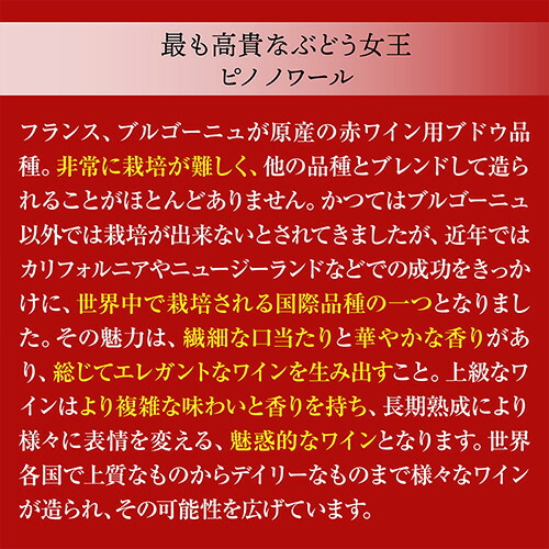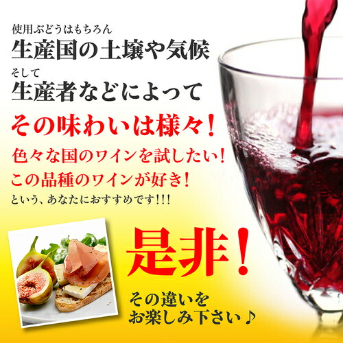 使用ぶどうはもちろん生産国の土壌や気候そして生産者などによってその味わいは様々! 産地や気候による違いを楽しもう♪