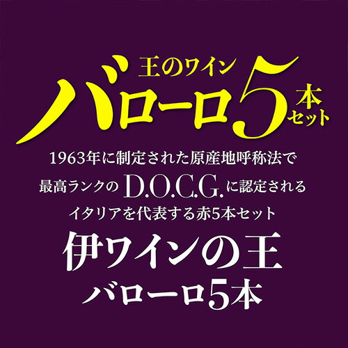 イタリアワインの王様バローロ★1963年に制定された原産地呼称法で最高ランクD.O.C.G.に認定されるイタリアを代表する赤ワイン5本セット!