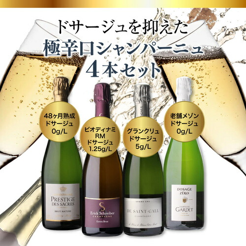 ドサージュが多いシャンパンは苦手! キリっとしたドサージュ控え目シャンパンがお好きな方にオススメの極辛口セット!