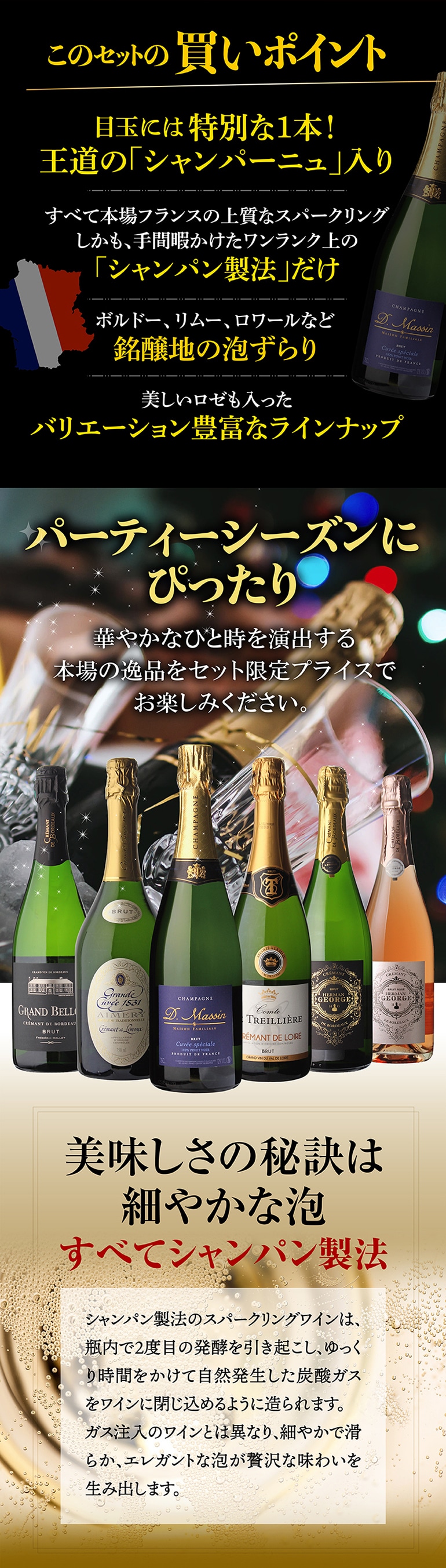 最低36ヶ月以上熟成旨味系シャンパーニュ入り! スパークリング6本セット