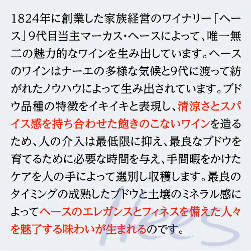 今やドイツのソムリエで知らない者はほとんどいない! ドイツナーエ「ヘース」コンプリート 4本セット! ヘースのエレガンスとフィネスを備えた味わいをご堪能ください。