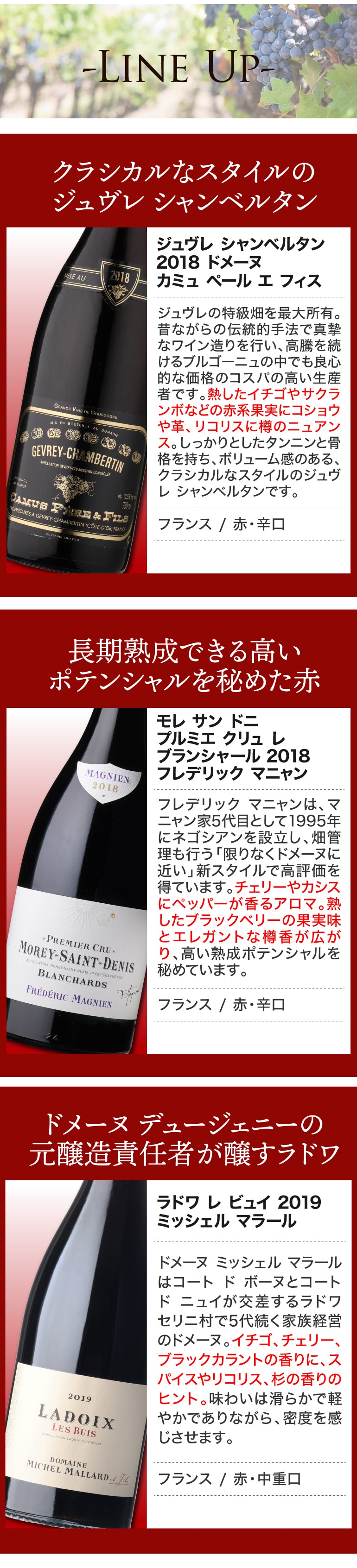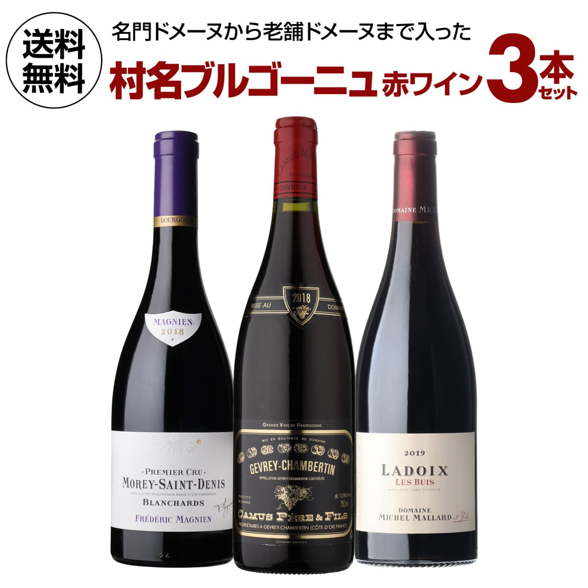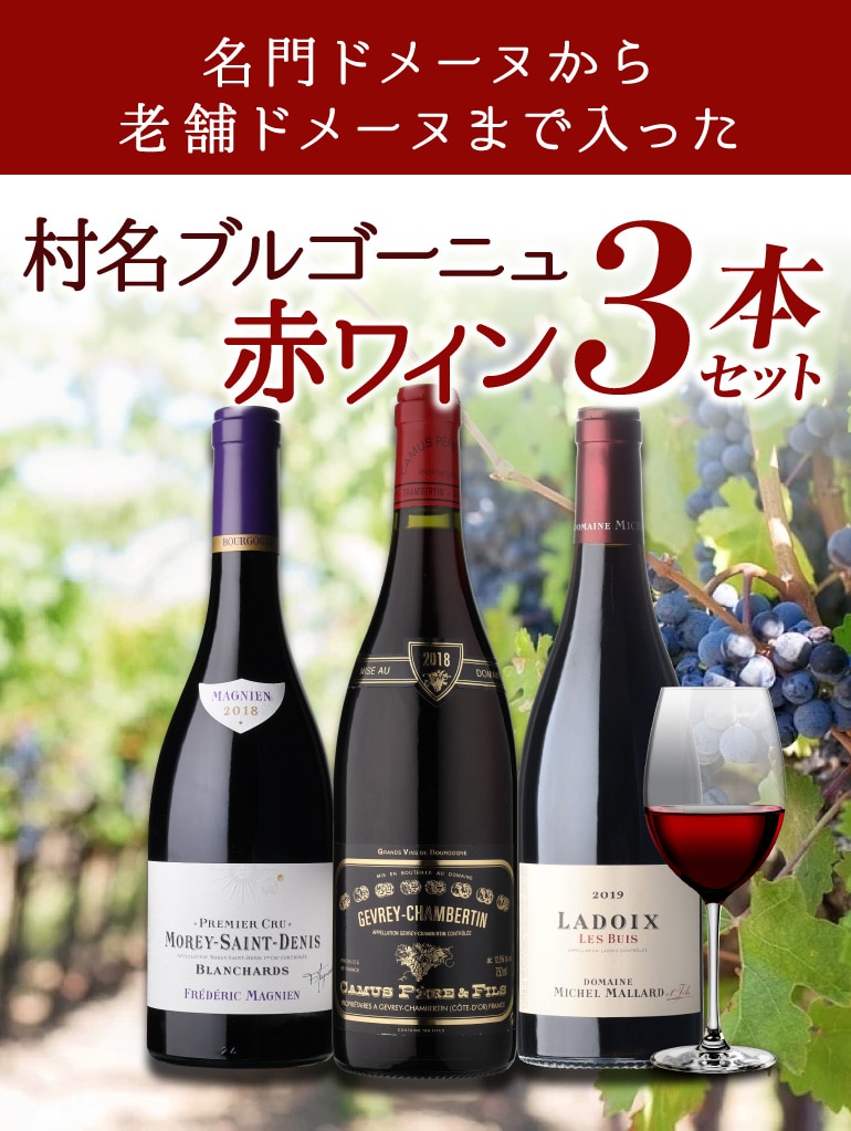 名門ドメーヌから老舗ドメーヌまで入った村名ブルゴーニュ赤3本セット★