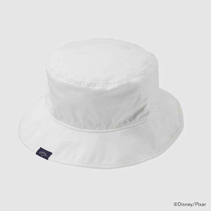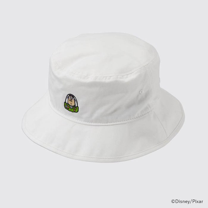 フロントに小さなキャラクターを刺しゅうしたバケットハットです。キャラクター色を控え目にしているので、コーディネートがしやすいです。フロントのツバを折り返すとキャラクターの名前が刺しゅうされています。