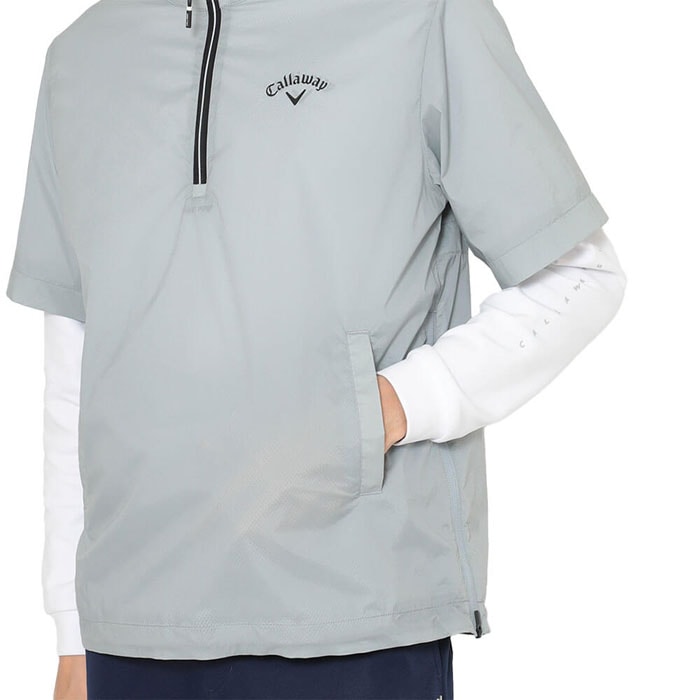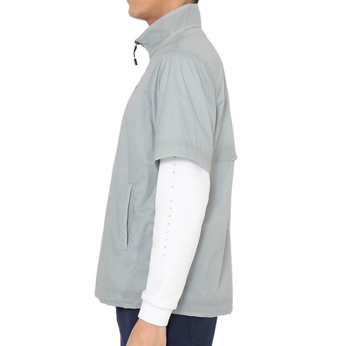 特長 肌馴染みの良い、柔らかなナイロン素材の半袖ブルゾンです。気温が変化しやすい羽織りモノとして重宝します。長袖のウェアと合わせることもできるため、ロングシーズン活躍するアイテムです。撥水性があり、少しの雨なら弾いてくれるので安心です。脇ファスナーで着脱がしやすく、裾のスピンドルでシルエットを変化させることができます。■撥水性■ストレッチ※ブルゾン以外は商品に含まれません。