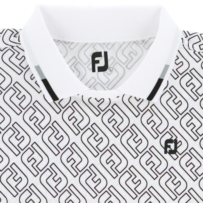 特長 吸汗速乾性に優れたメッシュ素材にFJロゴを製品全体にプリントした半袖スキッパーポロシャツ。クルーネックカラーにポロ衿を施したデザイン。