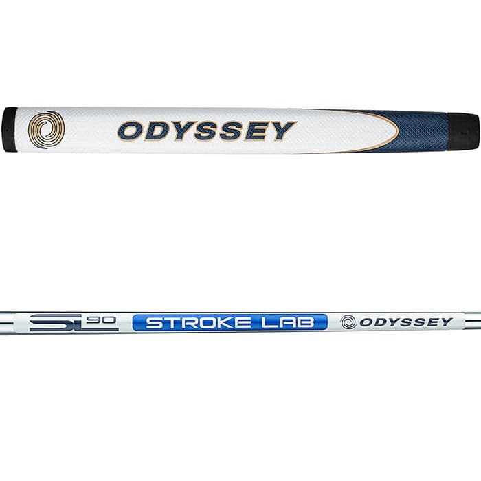 新たに開発された、スチール製の「STROKE LAB 90シャフト」 オデッセイ独自のSTROKE LABシャフトも一新されました。 従来のタイプは、スチールとカーボンの複合シャフトでしたが、ツアープレーヤーからは、「やはり、スチールのシャフトがいい」という声が出ていた一方、 「でも、STROKE LABシャフトの安定感も欲しい」というフィードバックがありました。 新しい「STROKE LAB 90シャフト」では、スチールで90g台の軽量さを実現しつつ、バット部を従来のSTROKE LABシャフトと同じ太さにしたことで、トルクを低減。 ストローク中のシャフトの無駄な動きを防ぎます。 また、手元側のシャフト内部には、カウンターウェイトも搭載しており、ストローク時のパター全体の慣性モーメントが高められています。
