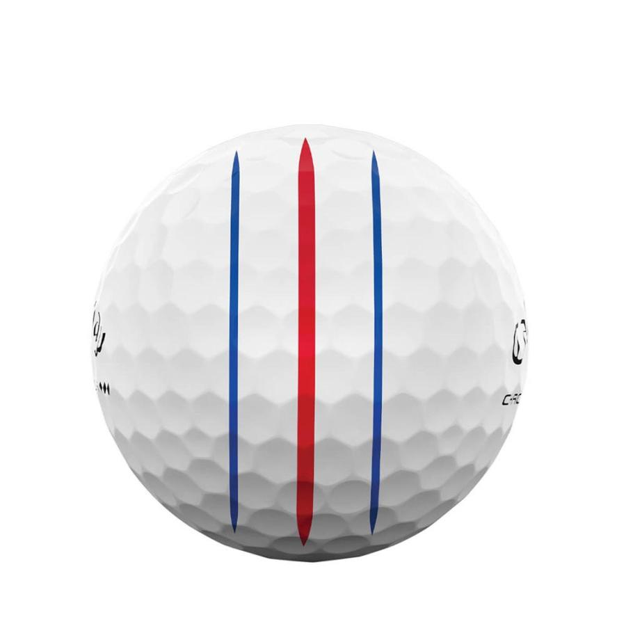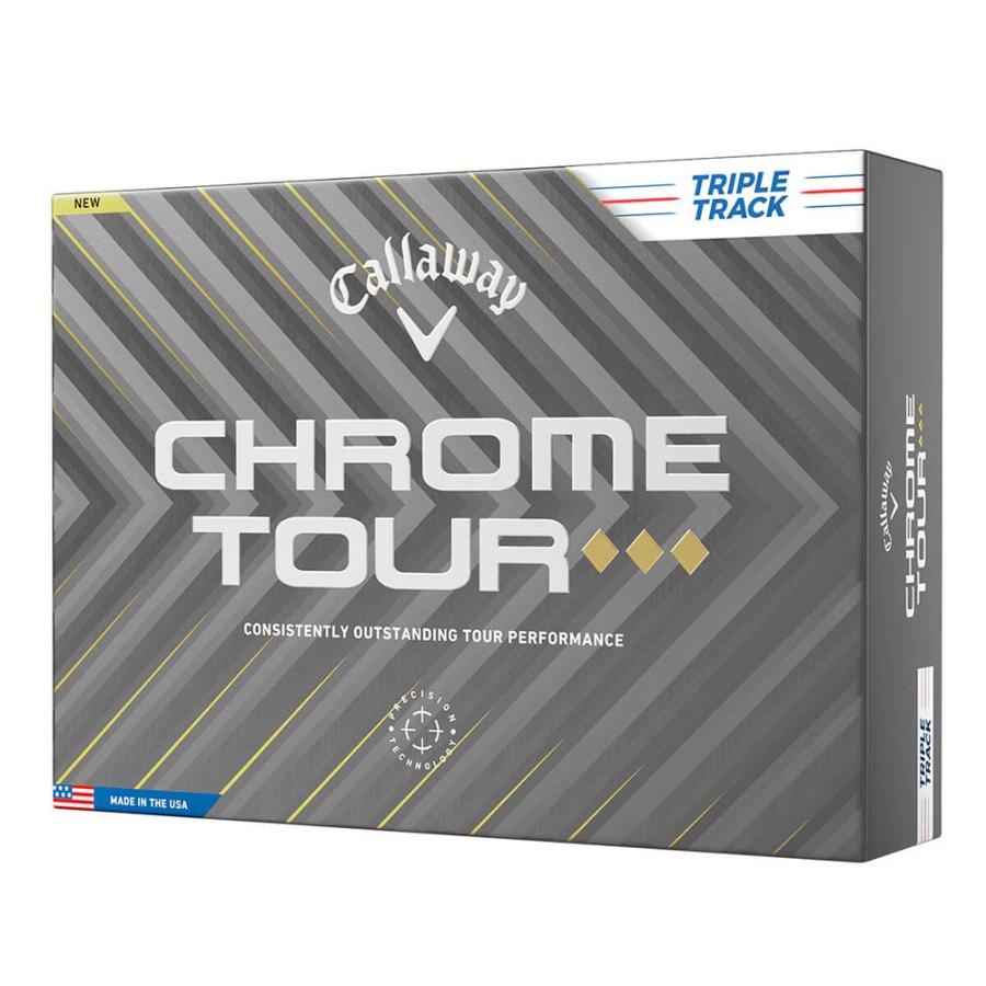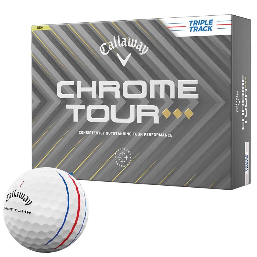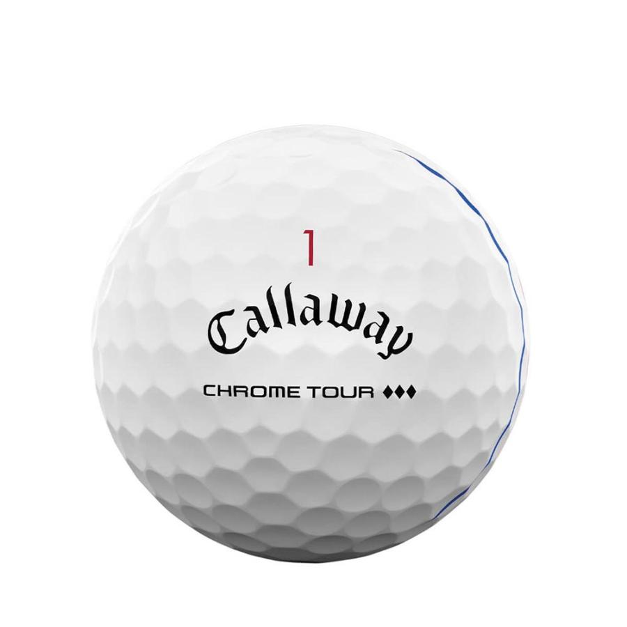 ボールで初登場の◆◆◆は、シリーズ随一の強弾道としっかり感 2024年登場のCHROME TOURシリーズに、ハードヒッター向けの「CHROME TOUR ◆◆◆ボール」が新たに追加されました。 構造は4ピースとなっています。特徴は、CHROME TOURボールと比べてロングゲームにおける低スピンと、CHROME TOUR Xボールを上回るしっかりとした打感。 より芯を感じるフィーリングのインパクトから強弾道が生み出され、まさに空気を突き破るように遠くへと孤を描いていきます。 その大きな要因となっているのは、素材の配合などが最適化されたハイパー・ファストソフト・コア、ハイスピード・デュアル・マントルと、 多くの6角形のなかに円形も組み込んだシームレス・ツアーエアロ。 最新設備で、従来以上に均一な厚みで成形可能となったハイパフォーマンス・ツアーウレタンソフトカバーにより、 グリーン周りでのパフォーマンスも含め、プロや上級者が充分に納得するレベルのパフォーマンスが得られます。