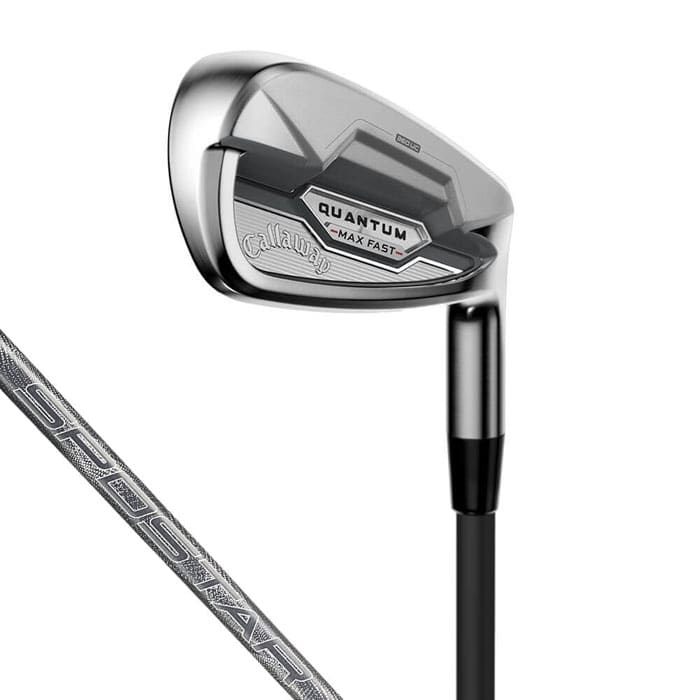 飛距離もミスへの許容度も大きい、テクノロジー満載の大型ヘッド [ QUANTUM MAX FAST IRONS / クアンタム マックス ファスト アイアン ] QUANTUMMAXアイアンと同じ番手構成ですが、ロフト角は一部の番手で、よりストロングな設定となっています。 ヘッド形状は、トウからヒールにかけての長さを感じさせる大きなものとなっており、QUANTUMMAXアイアンよりオフセットも大きめです。 安心感は絶大で、バックフェースのデザインも、下部の厚みのある部分の面積が大きく、いかにも低重心でボールが上がりやすそうなスタイルとなっています。