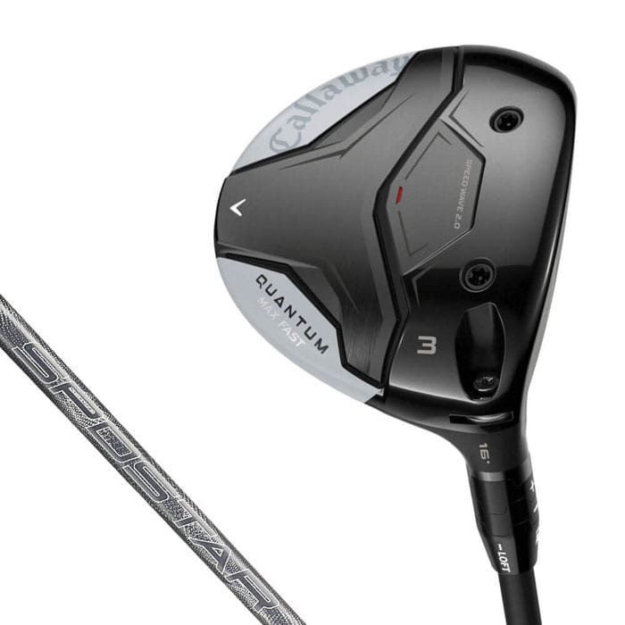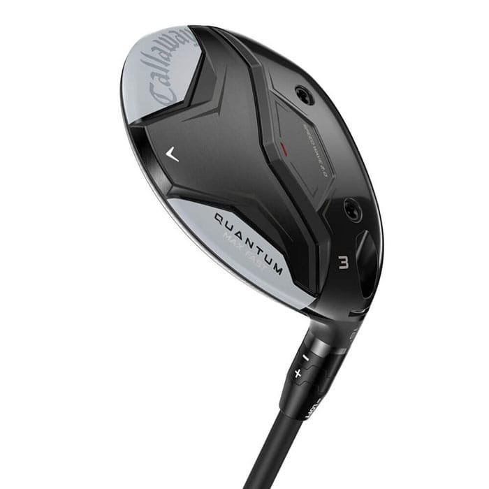 シャープにスイングできる軽さに加え、シャローでハイロフトな設計にも注目 [ QUANTUM MAX FAST FAIRWAY WOODS / クアンタム マックス ファスト フェアウェイウッド ] ヘッドは前後長が長めで、ドローバイアス。 ELYTE MAX FASTフェアウェイウッドと比較すると、フェースがさらにシャローで、トウとヒールの下部が少し箱型の形状になりボリュームもアップしています。 アドレス時にフェース面が広く見え、ボールが簡単に拾えそうな安心感があります。 MAX FASTモデルとして初めてオプティフィット4が3W、5Wに採用されています。 3W、5W、7Wまではカーボンクラウンで、9Wはステンレススチール製クラウンとなっています。 特徴的なのはロフト設定で、3Wにおいては、ボールの上がりやすさを重視した16度を採用しています。