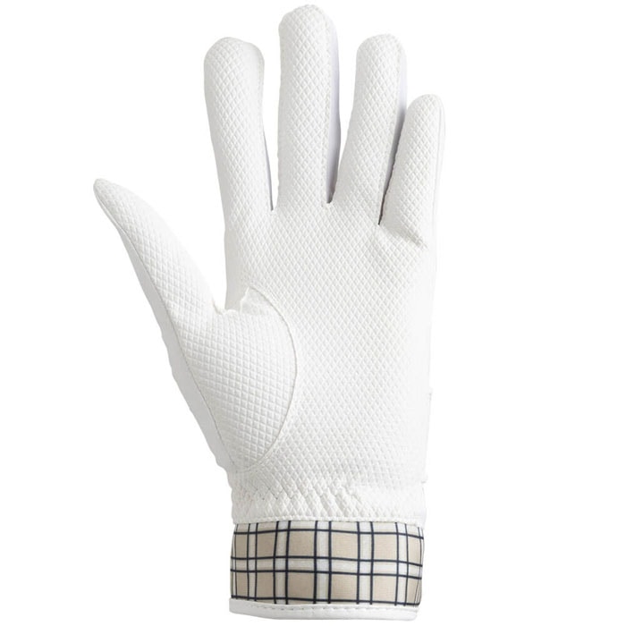 華やかにティーグラウンドを彩る?チェック柄デザイン。 ソフトな肌触り、抜群のフィット感、確かなグリップ力。日焼けを防ぎ、通気性もプラス。 ・ソフトな肌触りと抜群のフィット感 甲側には、伸縮性に優れたソフトな肌触りの合成皮革を採用。 指のマチ部分にはストレッチ素材を採用することで、グリップ時の指の動きにしなやかに追随し、抜群のフィット感を提供します。 ・エンボス加工でグリップ力をサポート 掌側には、高機能なエンボス加工の合成皮革を採用することで、女性の手でもしっかり握れる優れたグリップ力を発揮します。 耐久性にも優れ、長く使用いただける素材です。 ・日焼けを防ぎ、通気性も実現? 長めの袖が手首部分までカバー、さらにスリット部分にもストレッチ性のある素材を配置し、日焼けを防止。 タブ部分のパンチング穴は通気性をアップさせ、蒸れにくい機能性をプラスしています。