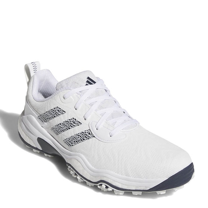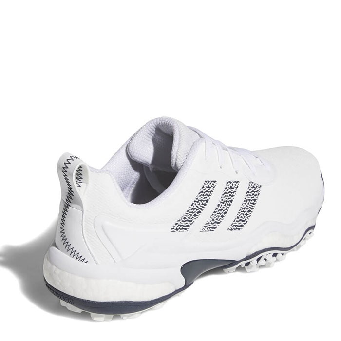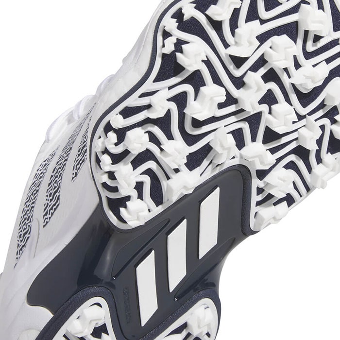 日本史上でもっとも売れたスパイクレスシューズ、コードカオスシリーズがフルモデルチェンジ。 adidas最高峰のツアースパイクレスパフォーマンスを追求して開発されたコードカオス25は前作のコードカオス22の性能全てが更にエレベートされている。 最大の特徴は前作から更に約40%も向上したグリップ力。 全く新しい、進化したTWISTGRIPは、前作アウトソールの一部からソール面の100%を覆う構造になり、 ラグ(凹凸)の形状・個数・配置の全てを見直し、コードカオス特有の地面と足裏全面が一体化するような特性に加えて地面に鋭く噛み付く様なグリップ要素をプラス。 アディダスゴルフ史上、トップクラスのグリップ性能をスパイクレスで実現。 ミッドソールは、独自の高性能クッショニング素材であるBOOSTとシリーズ初搭載となるLIGHTSTRIKEの2種類ハイブリッドした構造を採用。 従来コードカオスの快適なクッショニングをそのままに、スイング時には前作にないパワフルな反発と安定性の両方をもたらし、メリハリ感の強い性能を実現。 ・シューレースクロージャー ・マルチレイヤー防水ニットアッパー ・テキスタイルライニング ・Twist Grip ・3D トルションシステム ・LightstrikeとBOOSTを組み合わせたミッドソール ・INSITEソックライナー ・リサイクル/再生可能素材を20%以上使用 ・ツアーパフォーマンスラスト(EE相当)