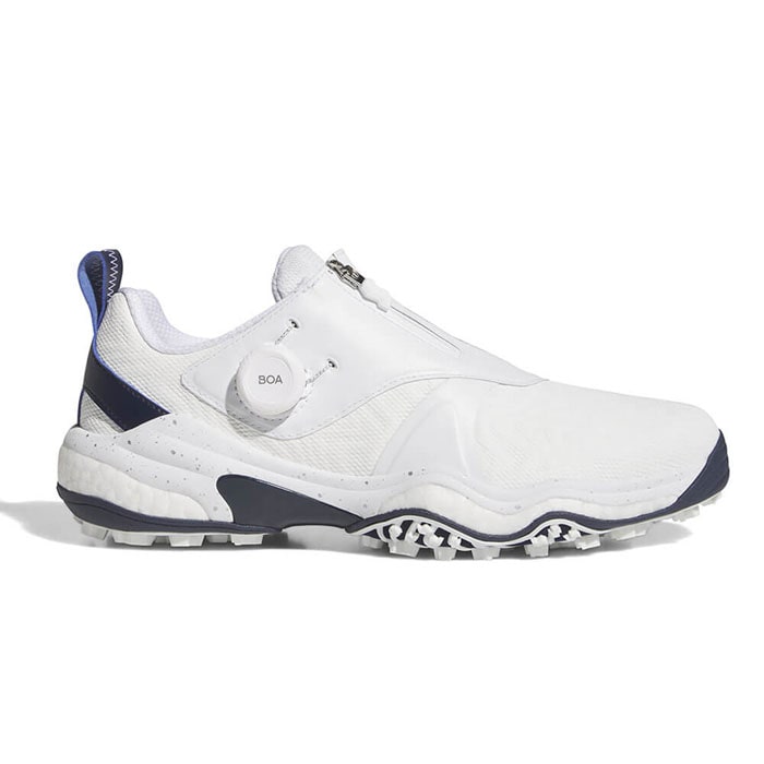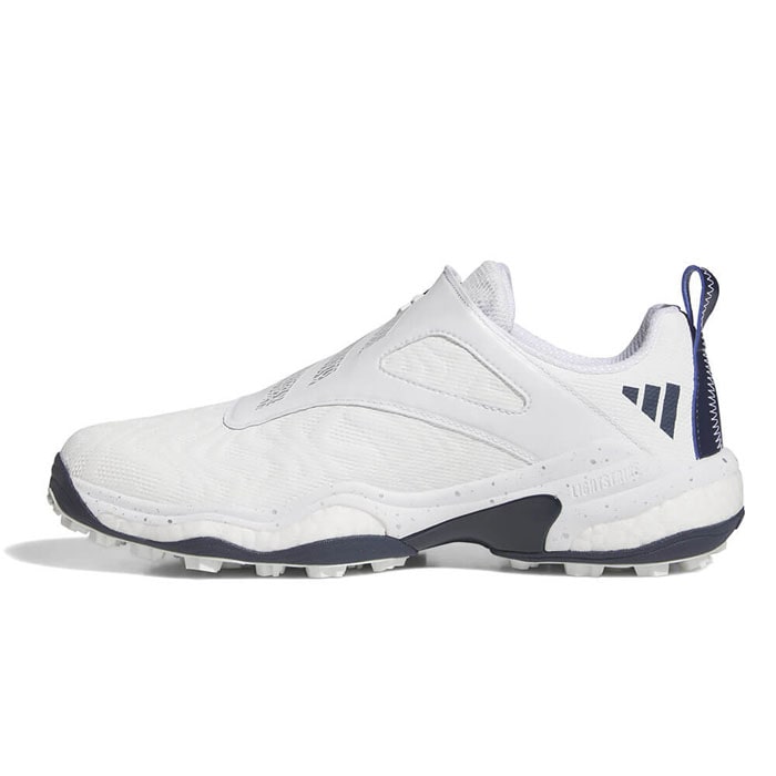 日本史上でもっとも売れたスパイクレスシューズ、コードカオスシリーズがフルモデルチェンジ。 adidas最高峰のツアースパイクレスパフォーマンスを追求して開発されたコードカオス25は前作のコードカオス22の性能全てが更にエレベートされている。 最大の特徴は前作から更に約40%も向上したグリップ力。 全く新しい、進化したTWISTGRIPは、前作アウトソールの一部からソール面の100%を覆う構造になり、 ラグ(凹凸)の形状・個数・配置の全てを見直し、コードカオス特有の地面と足裏全面が一体化するような特性に加えて地面に鋭く噛み付く様なグリップ要素をプラス。 アディダスゴルフ史上、トップクラスのグリップ性能をスパイクレスで実現。 ミッドソールは、独自の高性能クッショニング素材であるBOOSTとシリーズ初搭載となるLIGHTSTRIKEの2種類ハイブリッドした構造を採用。 従来コードカオスの快適なクッショニングをそのままに、スイング時には前作にないパワフルな反発と安定性の両方をもたらし、メリハリ感の強い性能を実現。 ・ダイヤルで微調節可能なBOAフィットシステム ・マルチレイヤー防水ニットアッパー ・シュラウドにジッパー ・Twist Grip ・3D トルションシステム ・LightstrikeとBOOSTを組み合わせたミッドソール ・INSITEソックライナー ・リサイクル/再生可能素材を20%以上使用 ・ツアーパフォーマンスラスト(EE相当)