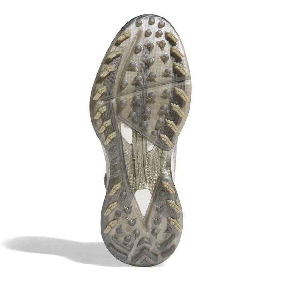 シューズ全体の構造から、スイングのエネルギーを増幅する軽量パワーギア。 アグレッシブなフットワークを高次元でサポートする安定性と強いグリップ力を兼ね備え、同カテゴリーのツアーシューズと比べて約100gもの軽量化に成功。 ◆ アッパー ◆ 軽量で薄く、足のブレをさらに強力に制御する防水スプリントスキンアッパー。 スプリントフレームやエンジニアードニットなどの異なる素材をアッパー全体にレイヤリングし、安定性とホールド力に優れたアッパー構造を採用することで重量が増えずに強く速いスイングをサポートする。 ◆ ミッドソール ◆ 超軽量で高反発なLIGHTSTRIKE PROを搭載。BOOSTと同等のクッション性能に加え、高反発性能によってスイング時に鋭い蹴りを可能にする。 屈曲時の形状維持性能によって、高い推進力も誇る。ヒール周りには通常のLIGHTSTRIKEによって、さらに反発力を高めながら安定性を担保。 ◆ DYNAMIC TORSION PLATE ◆ スイング時のパワーを増幅する足裏の特殊パーツ。 ・ダイヤルで微調節可能なBoaフィットシステム ・ツアーパフォーマンスラスト