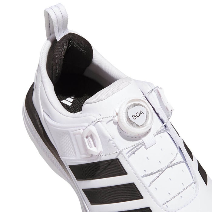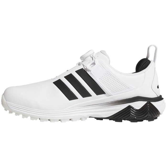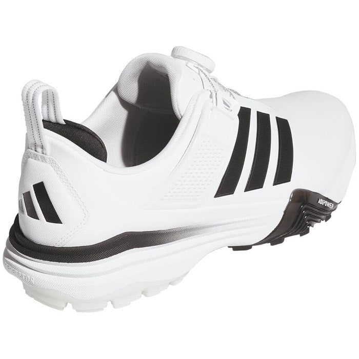 スイング時には足元から力強さを発揮し、その以外の時は快適性をもたらすトータルパフォーマンスの高いモデル、ADIPOWER。 アッパーはソフトでありながらパワフルなスイングに対応し、防水マイクロファイバーレザーを採用。 通気性の高いシュータンやBOAのフローティングパワーバンド、そして枕のような分厚いキャットタン・ヒールによって、特に足首周りの安定性を一般的なシューズより格段に向上させながら非常にソフトな履き心地を両立。 ミッドソールにはREPETITORクッショニングがゴルフシューズとしては初採用され、BOOSTよりもソフトかつ軽量でLIGHTSTRIKE PROと同等のエナジーリターンを誇る高性能素材。 アウトソールもTPUとラバーのハイブリッド構造で高いグリップ力と安定性を兼ね備えており、トータルパフォーマンスを追求しています。 パワーと快適性を両立し、革新的テクノロジーでどんなゴルファーにもパフォーマンスをもたらしてくれる1足。 新しいワイドラストによって、足幅が広めの足形にも快適にフィット。 パフォーマンスワイドラスト(EEE相当) ・ワイドフィット ・BOAフィットシステム ・合成素材のアッパー ・テキスタイルソックライナー ・ラバーアウトソール