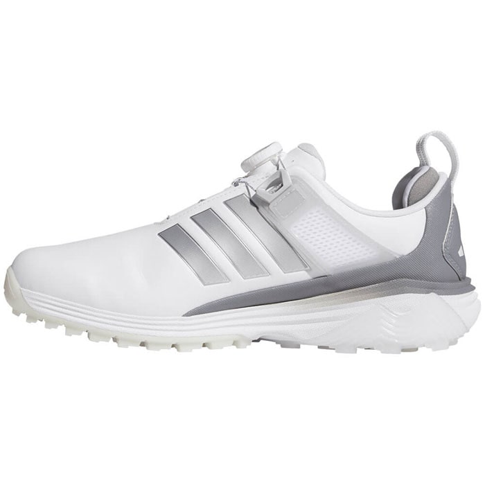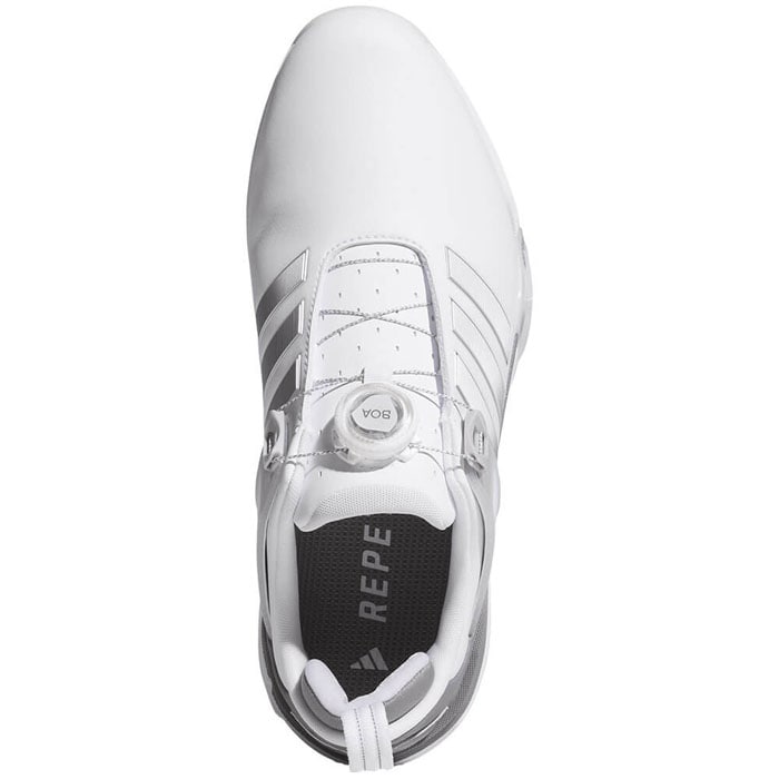 スイング時には足元から力強さを発揮し、その以外の時は快適性をもたらすトータルパフォーマンスの高いモデル、ADIPOWER。 アッパーはソフトでありながらパワフルなスイングに対応し、防水マイクロファイバーレザーを採用。 通気性の高いシュータンやBOAのフローティングパワーバンド、そして枕のような分厚いキャットタン・ヒールによって、特に足首周りの安定性を一般的なシューズより格段に向上させながら非常にソフトな履き心地を両立。 ミッドソールにはREPETITORクッショニングがゴルフシューズとしては初採用され、BOOSTよりもソフトかつ軽量でLIGHTSTRIKE PROと同等のエナジーリターンを誇る高性能素材。 アウトソールもTPUとラバーのハイブリッド構造で高いグリップ力と安定性を兼ね備えており、トータルパフォーマンスを追求しています。 パワーと快適性を両立し、革新的テクノロジーでどんなゴルファーにもパフォーマンスをもたらしてくれる1足。 新しいワイドラストによって、足幅が広めの足形にも快適にフィット。 パフォーマンスワイドラスト(EEE相当) ・ワイドフィット ・BOAフィットシステム ・合成素材のアッパー ・テキスタイルソックライナー ・ラバーアウトソール