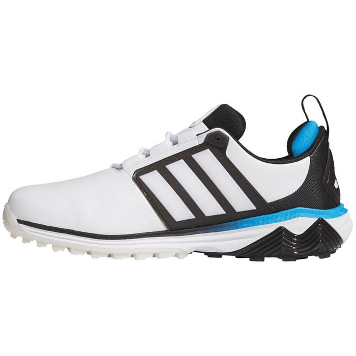 スイング時には力強さを発揮し、その以外の時は快適性をもたらすトータルパフォーマンスの高いモデル、ADIPOWER。 アッパーはよりサポート力のある防水天然皮革素材でダイナミックな動きにも対応し、中足部には大胆にTPUのパネルを両足面に配置することで高い安定性を実現。 BOAモデルと同様に通気性の高いシュータンやヒールにはキャットタンを搭載し、足首周りのフィット感を一般的なシューズより格段に向上させています。 ミッドソールにはREPETITORクッショニングがゴルフシューズとしては初採用され、BOOSTよりもソフトかつ軽量でLIGHTSTRIKE PROと同等のエナジーリターンを誇る高性能素材。 アウトソールもTPUとラバーのハイブリッド構造で高いグリップ力と安定性を兼ね備えており、トータルパフォーマンスを追求しています。 パワーと快適性を両立し、革新的テクノロジーでどんなゴルファーにもパフォーマンスをもたらしてくれる1足。 新しいワイドラストによって、足幅が広めの足形にも快適にフィット。 パフォーマンスワイドラスト(EEE相当) ・ワイドフィット ・シューレース(靴ひもタイプ) ・レザーと合成素材のアッパー ・テキスタイルソックライナー ・ラバーアウトソール ・TRAXIONテクノロジー ・REPETITORミッドソール