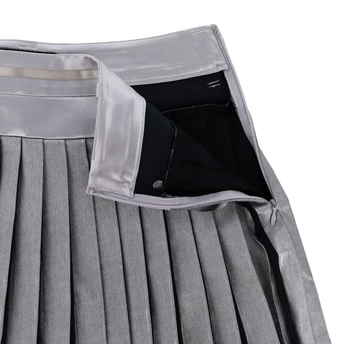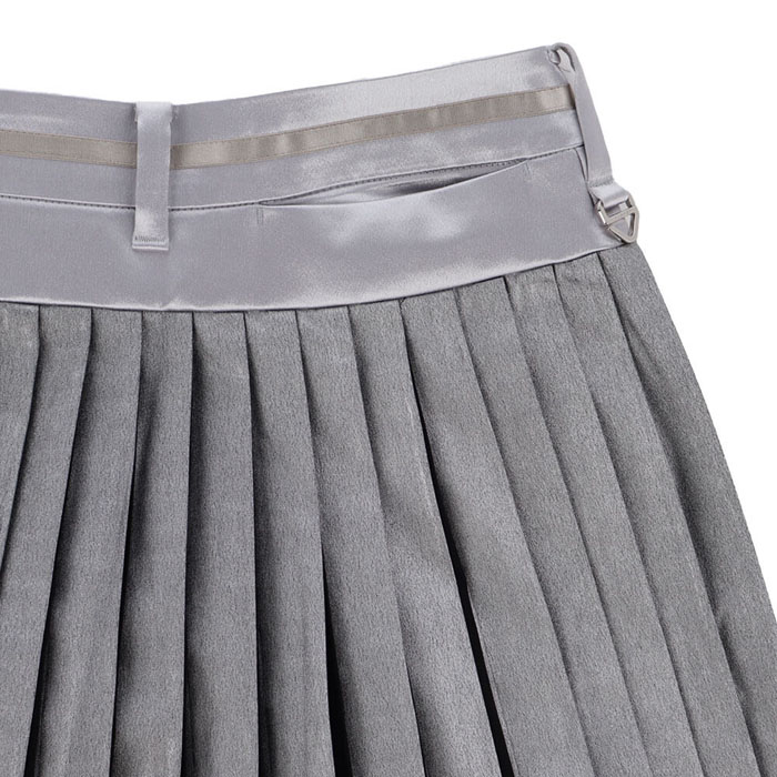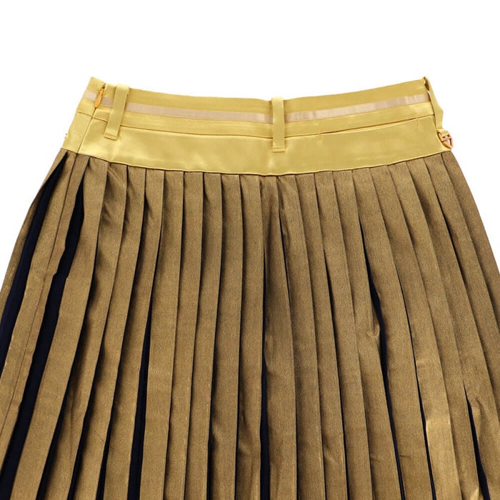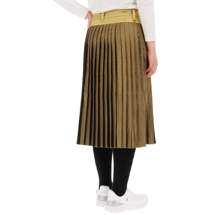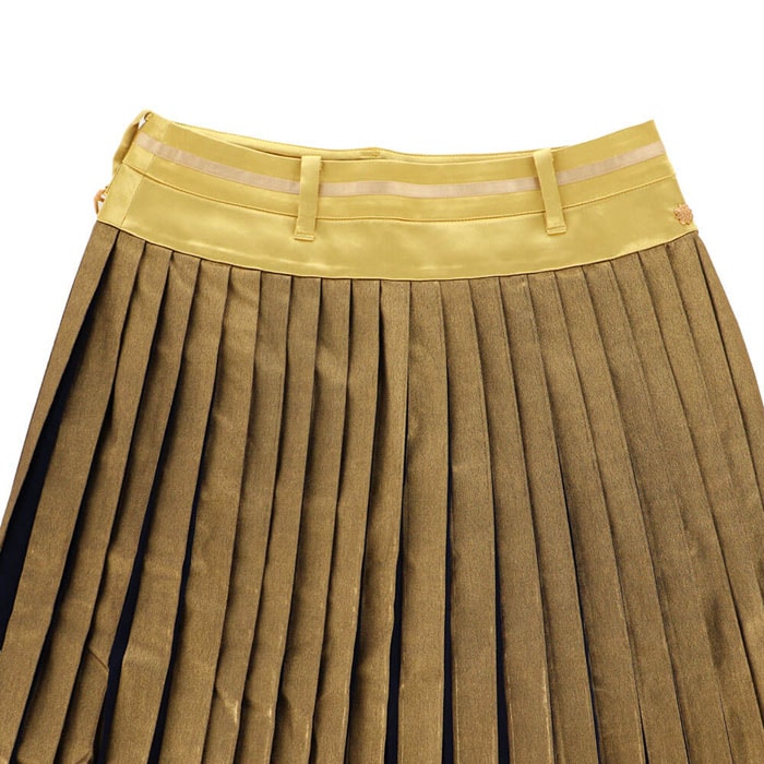 特長 ゴールドとシルバーのストライプ箔プリントプリーツスカート。ギラギラ光過ぎない上品な光沢感のある、女性らしいエレガントな表情のプリーツスカートです。※スカート以外は商品に含まれません。