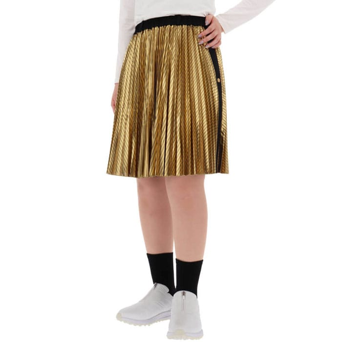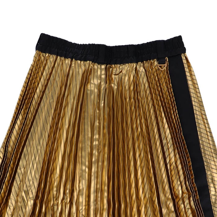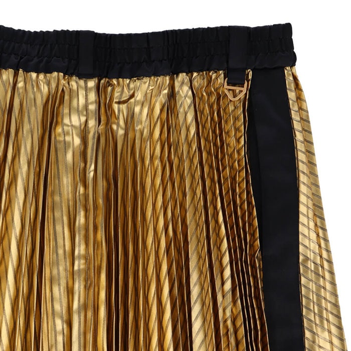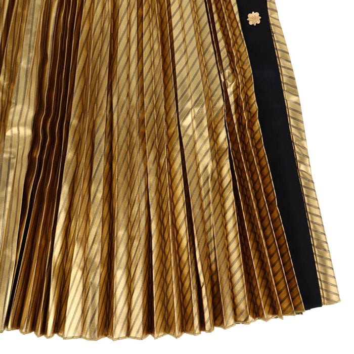 特長 サテンストライプの生地に高品質な耐久箔プリントを施し、ストライプと箔の組み合わせの美しい上品な光沢感の素材を使用したプリーツスカートです。※スカート以外は商品に含まれません。