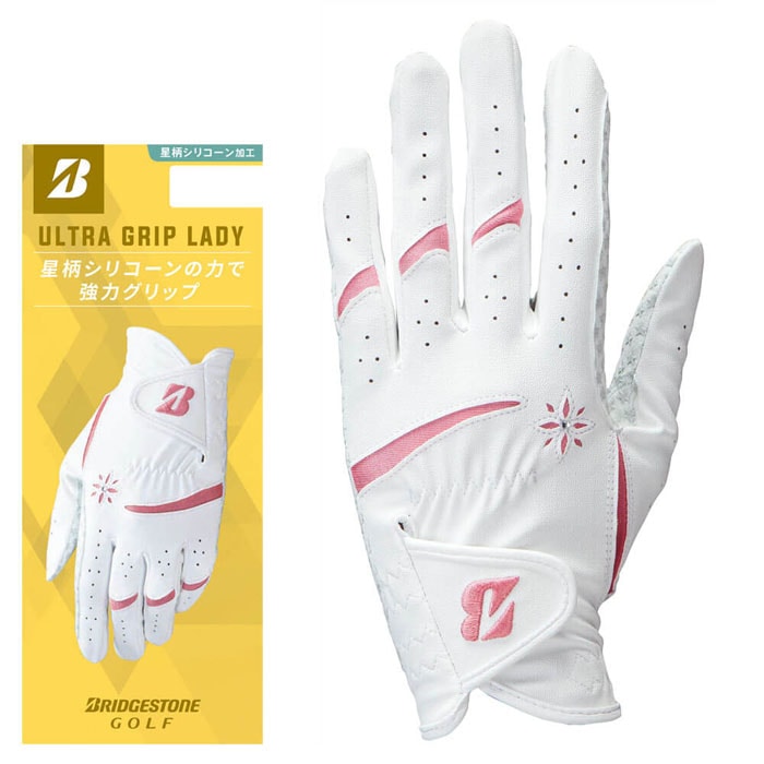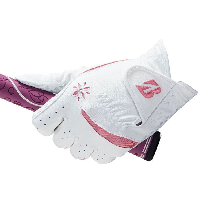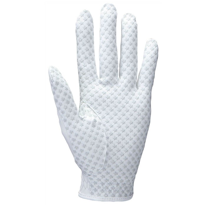手のひら側に星柄シリコーンプリントを施し、密着性を高めることでスイング時のグローブとグリップ部のズレを抑制。 花柄モチーフ部にラインストーンを施し、手元に華やかさをプラス。