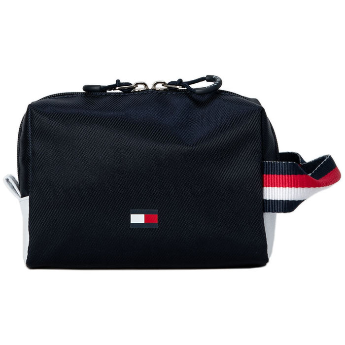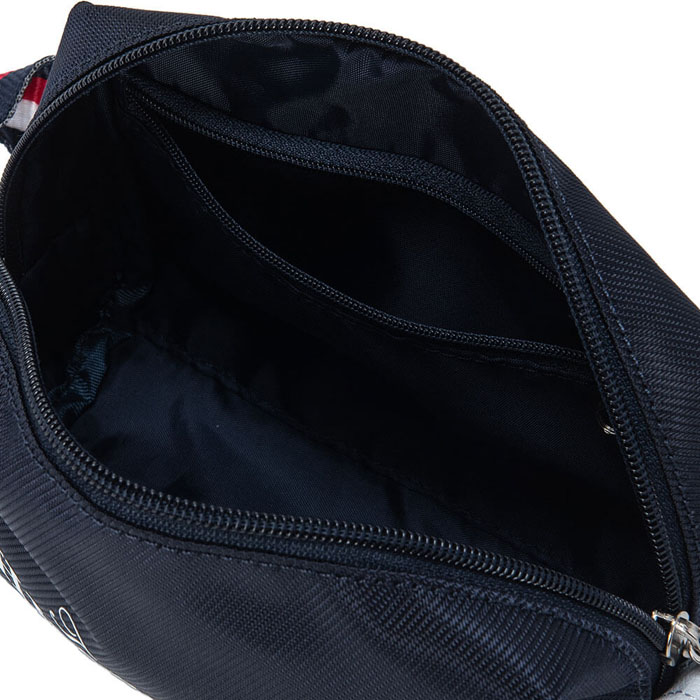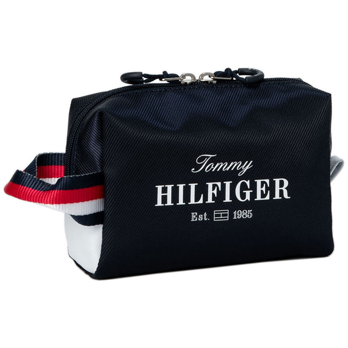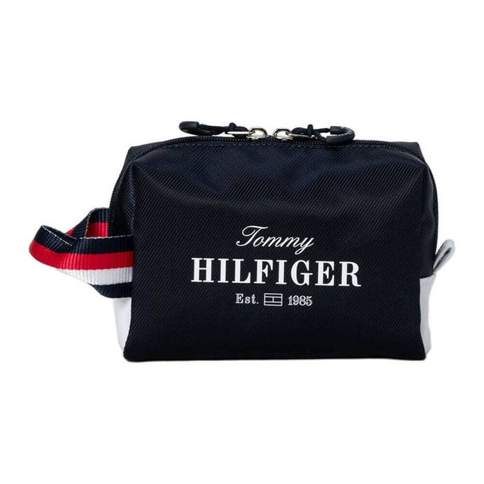 斜め柄の品の良いポリエステル生地とレザー調の合皮生地をMIXしたカジュアルなポーチ。サイズ感も大きすぎずバッグインバッグとして最適です。トミーカラーのハンドルテープが使用されています。