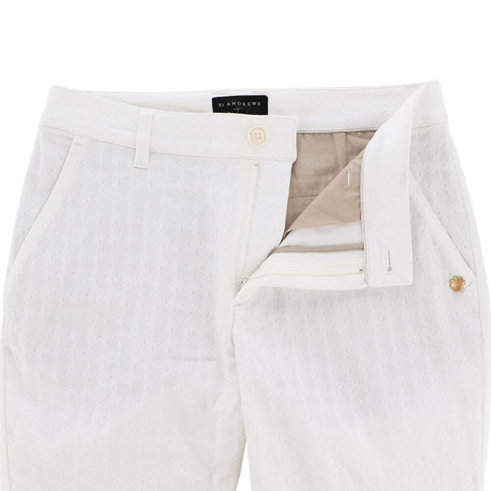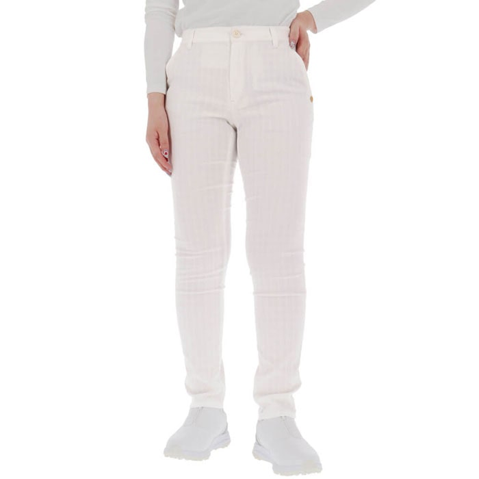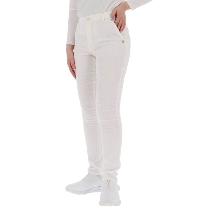 特長 メタリックのロゴモチーフでゴージャス感をプラスした、変形千鳥ジャガードパンツ。肌当たりの良い高品質なジャガードで、立体感を持たせたトラディショナルな柄を表現。【ストレッチ】適度に伸縮する生地で動きやすさを実現します。※パンツ以外は商品に含まれません。