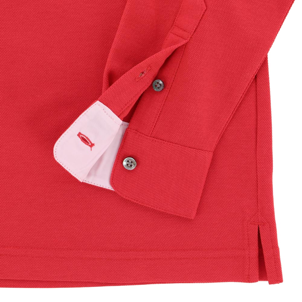 特長 胸のロゴ刺繍がポイントの長袖ポロシャツ。