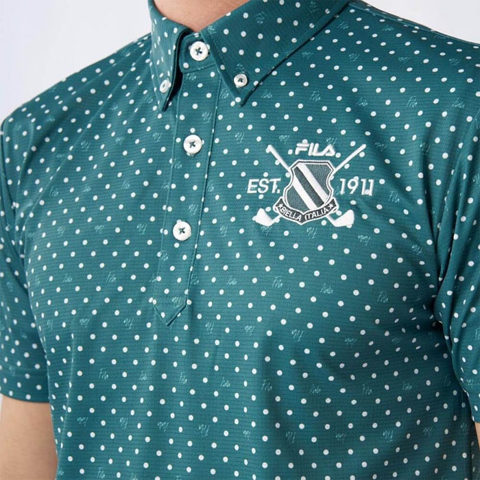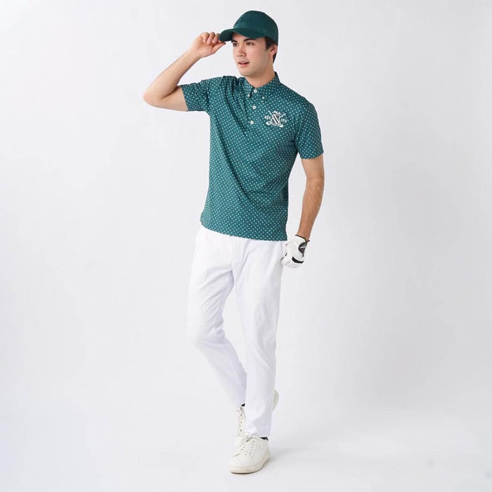 特長 ストレッチ性の高いブロック地柄素材を使用。ドット柄がおしゃれな半袖シャツです。さらに遮熱機能付きで暑い季節にもぴったり。裾にスリットをつけて着用時にお腹周りのシワを軽減。エンブレム刺繍が入っています。・吸汗速乾・UVカット・接触冷感・遮熱※シャツ以外は商品に含まれません。