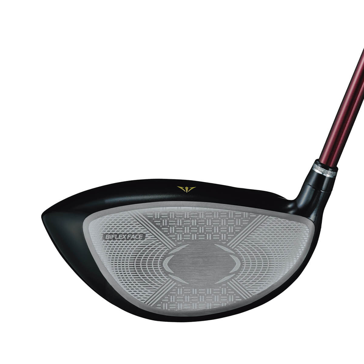 芯を広げて、飛ばす BiFLEX FACE ・たわみの進化で高初速エリア拡大 ヘッド形状に合わせて外周部を更に薄肉化しながら、トウ~ヒールにかけて剛性をフロー。 センターからオフセンターショット時のたわみを大きくすることで高初速エリアを拡大させるテクノロジー「BiFLEX FACE」。 ・トウサイド / ボディのたわみで初速アップ 大きくたわむフェースをフレームがしっかり受け止めることでボディのたわみを増幅し、高初速を実現。 ・ヒールサイド / フェースのたわみで初速アップ インパクト時のフェースのたわみを大きくすることで高初速を実現