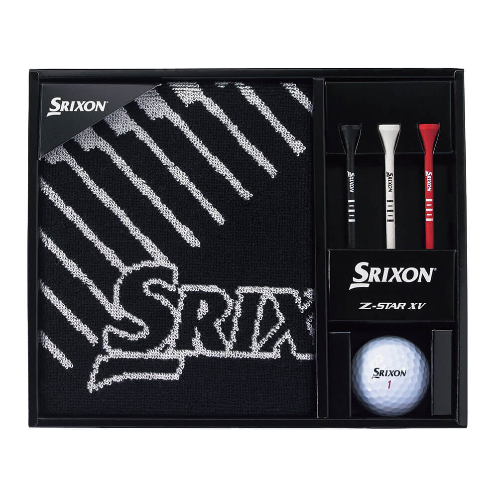 人気のスリクソンゴルフボールとスポーツグッズをお洒落にコーディネート。コンペの賞品や贈答にセンスが光るコレクションです。・ボール スリクソン Z-STAR XV(ホワイト)×1球・ウォッシュタオル×1・ウッドティ×3(ホワイト、レッド、ブラック各1本)