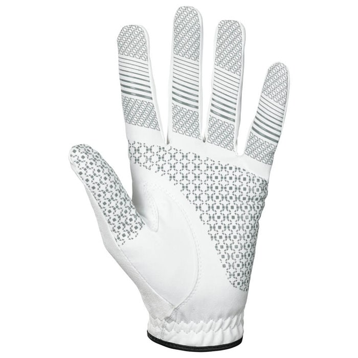 しっかり握れる強力グリップ。細かなシリコンプリントが高密着。 ・強力グリップ 掌側にパターンの異なるシリコンプリントを施し、グリップと擦れやすい部分の密着性を高めることで、しっかりと握れて安心して振り切れるグリップ力を実現。スエード調の合成皮革は吸水性があるため、雨・汗に濡れてもすべりにくい。 ・優れたフィット感 柔らかな合成皮革と伸縮素材の組み合わせで握りやすくグリップする手の動きにフィット。