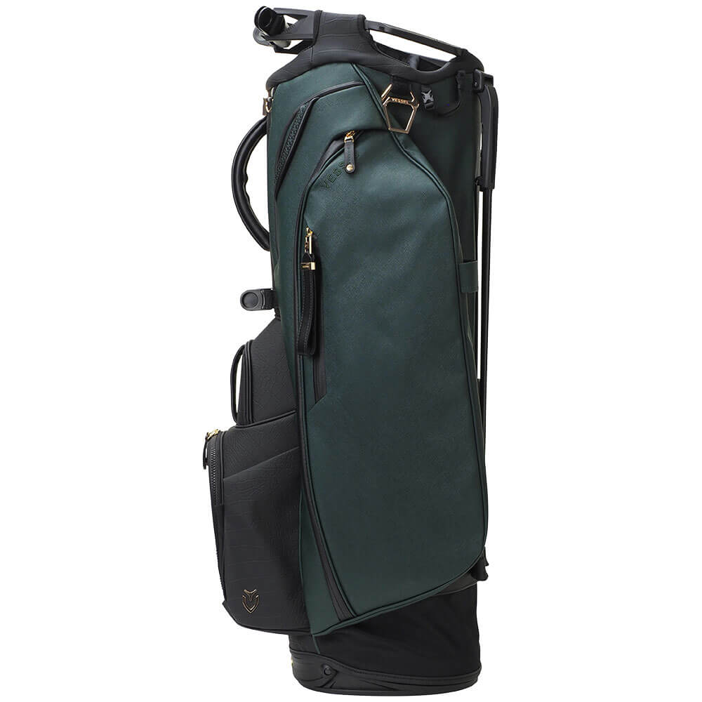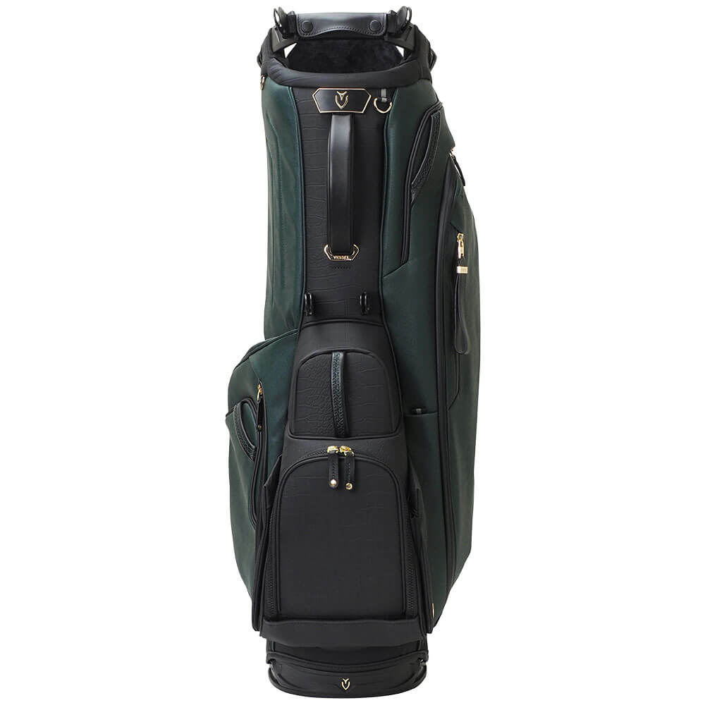 気品と高級感を兼ね備えた洗練された機能美を持つ限定カラー。 深みのあるグリーンがフィールドに映え、クロコブラックとのコントラストが上質な存在感を演出。 ※数量限定 ・10ポケット ・上部マグネットポケット / 抗菌ベロア裏地 ・タオルリング ・ストラップ傘ホルダー ・カーボン製スタンド ・サイドポケット(右側) / 抗菌ベロア裏地、キーホルダー付き ・ダイヤルロック付 貴重品用抗菌ベロアポケット ・マグネットポケット / 内部仕切りあり、抗菌ベロア裏地 ・ペンホルダー ・マグネット式ボトルホルダー ・ボールポケット / 内部整理用メッシュポケット3か所 ・サイド保冷ポケット(左側) ・専用カートストラップスリーブ付属 ※VESSELのスタンドバッグは、スタンドを広げた状態での使用を前提に設計・製造されております。 クラブを入れたままで、スタンドをたたみバッグを立てた場合、バッグが傾いたり、転倒する恐れがございます。 ご使用に当たっては、スタンドを広げた状態でご利用ください
