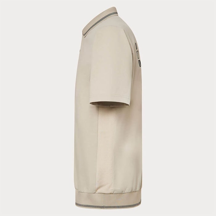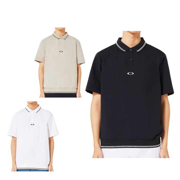 特長 OAKLEY SYNC PACKシャツは、吸汗速乾性、伸縮性、形状安定性、軽量性、その他様々な利点の機能を組み合わせることで、常に身体を快適に保ち、アスリートのパフォーマンスを最大限に引き出すために開発。ドビー柄が特徴的な吸汗速乾素材を採用したポロシャツは、凹凸感があり肌離れが良く、ドライで快適な状態をキープ。背中にはグラフィックロゴを搭載し、ゴルフ場での目を引くデザイン。衿リブ仕様で、裾にもリブを採用する事で、シャツをアウトした際もスタイリッシュに着用可能。脇部分には通気性が高く肌面に凹凸感のある吸汗速乾メッシュを採用し、蒸れとベタ付きによる不快感を軽減。■吸汗速乾■ストレッチ■裏点接触