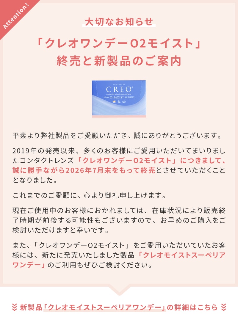 | 商品名 | クレオワンデーO2モイスト |