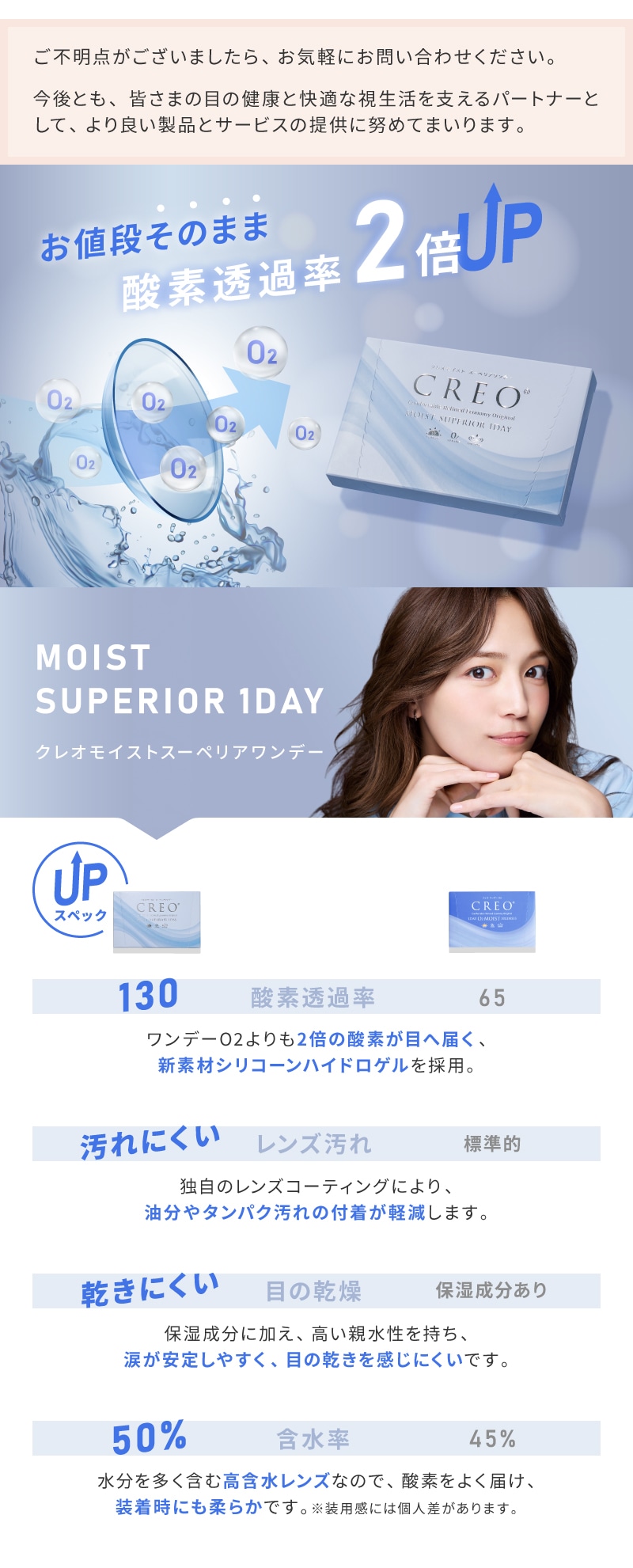 | クレオワンデーO2モイスト レンズスペック | |