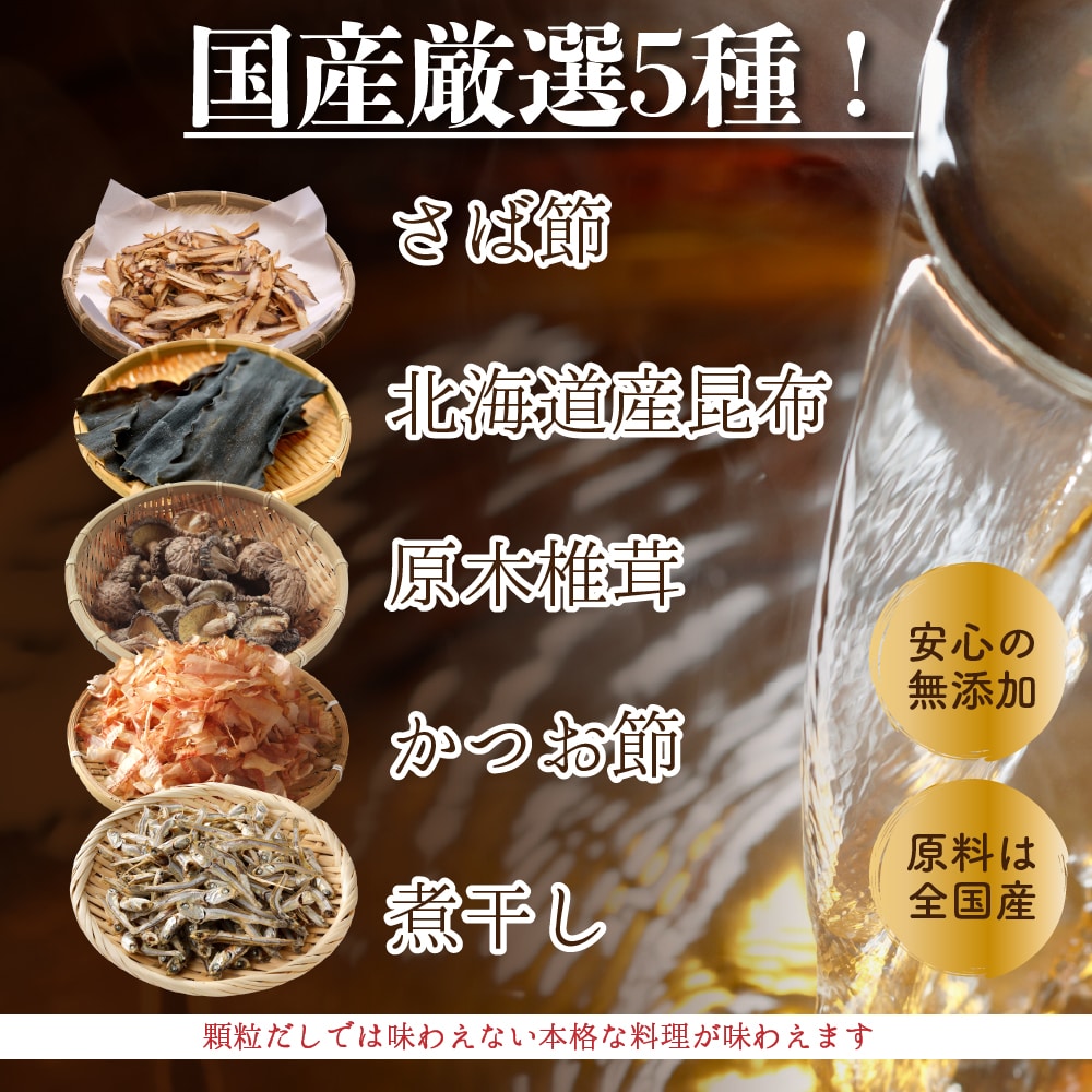 【名称】 和風だしパック 【原材料(産地)】 食塩(国内製造)、酵母エキス、砂糖、鯖節、宗田鰹節、いわし煮干し、粉末昆布、乾椎茸、粉末醤油(食塩(国内製造)、酵母エキス、砂糖、鯖節、宗田鰹節、いわし煮干し、粉末昆布、乾椎茸、粉末醤油(大豆・小麦・さばを含む) 【内容量】 一袋(1袋50包入り) 【栄養成分表示】 (100g当たり) エネルギー 220kcal たんぱく質 30.6g 脂質 1.5g 炭水化物 21.1g 食塩相当量 40.4g 【賞味期限】 製造日より365日(詳細は商品のラベルに記載しております) 【保存方法】 直射日光・高温多湿を避けて保存してください。※吸湿性がありますので、開封後は速やかに使用してください。 【配送方法】 メール便でのご配送となります。 【販売者】 株式会社 雑穀米本舗 住所:静岡県静岡市葵区羽鳥本町11-11 TEL:054-278-8160