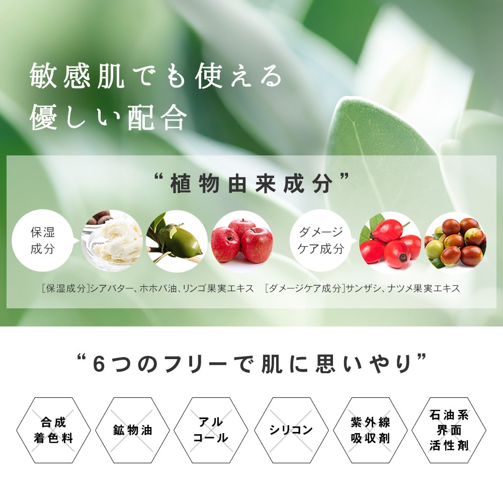 ・使用中、赤味・はれ・かゆみ・刺激・色抜け(白斑)や黒ずみなどの異常があらわれたり、使用後、直射日光があたり同様の症状があらわれた場合は、直ちに使用を中止し、皮膚科専門医などにご相談ください。