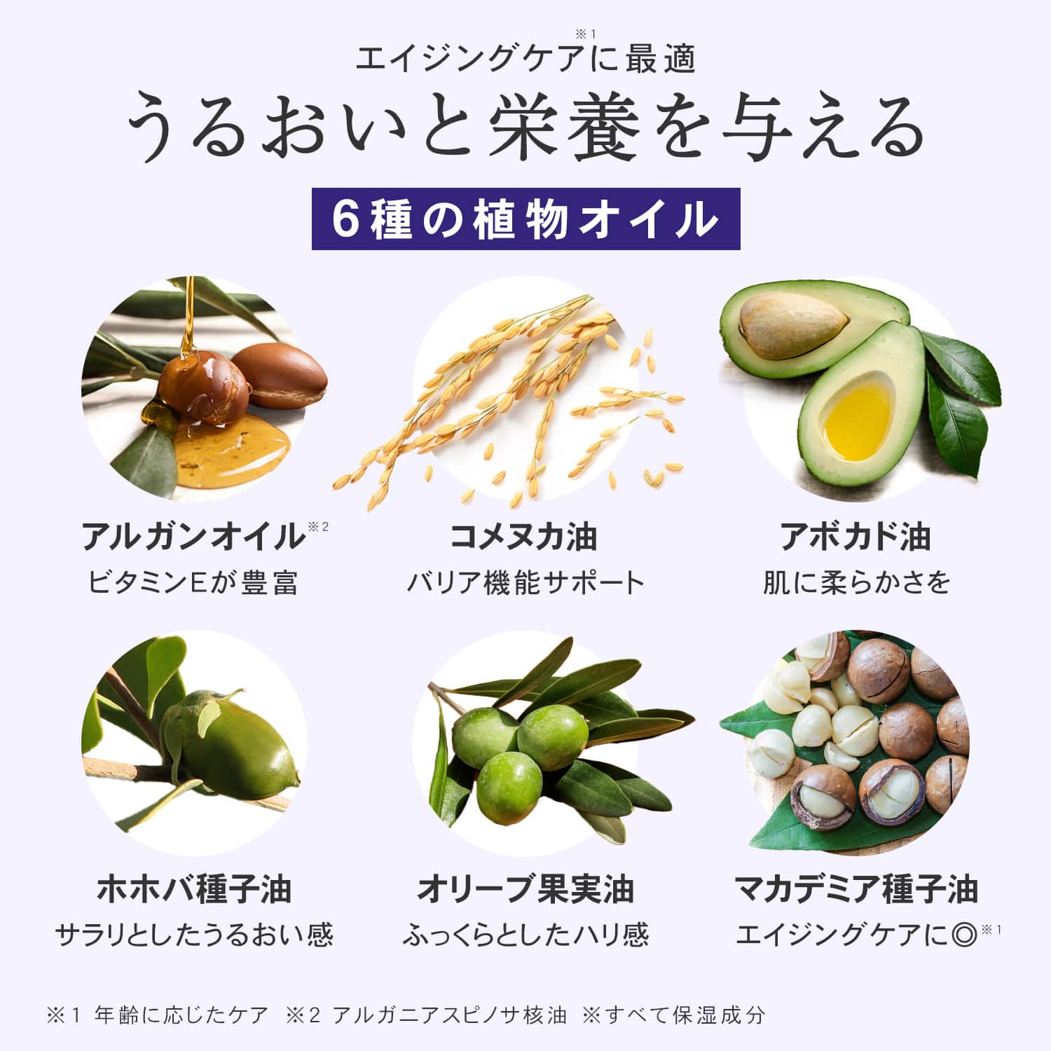 植物(※1)とアミノ酸(※2)でつくった、素肌にやさしい毛穴の黒ずみスゴ落ちクレンジングオイル。軽く撫でるだけで濃厚メイクがみるみる落ちます。 ※1 アルガニアスピノサ核油、マカデミア種子油、オリーブ果実油、コメヌカ油、ホホバ種子油、アボカド油、ソメイヨシノ葉エキス、セイヨウキズタ葉/茎エキス、アルニカ花エキス、アーチチョーク葉エキス、ザクロ果実エキス、ハマメリス葉エキス、セイヨウオトギリソウ花/葉/茎エキス、ブドウ葉エキス ※2 バリン、トレオニン、イソロイシン、ヒスチジン、フェニルアラニン、アルギニン、アスパラギン酸、グリシン、アラニン、セリン、プロリン