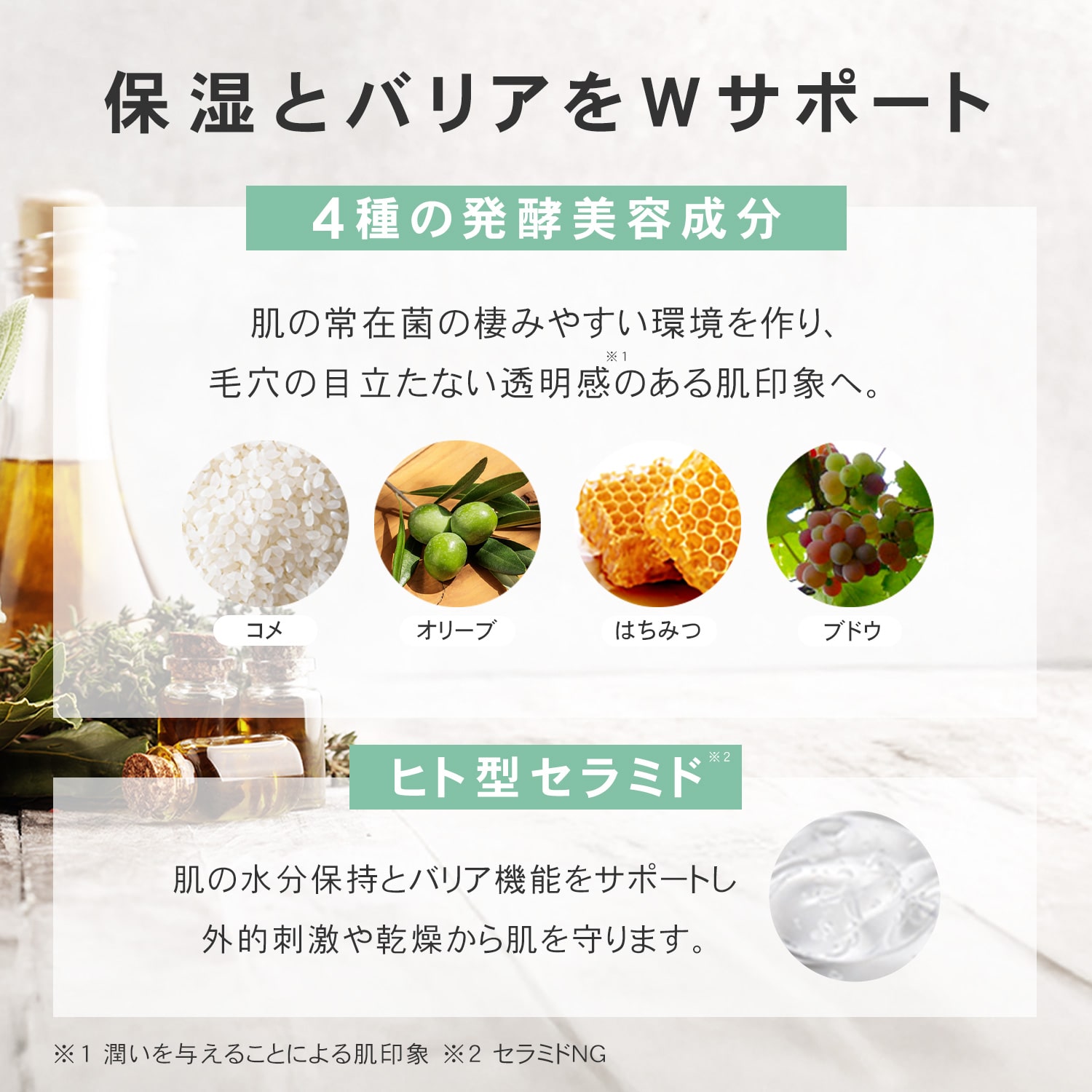 とろける泡の導入美容液。高濃度炭酸と4種の発酵美容成分(※1)がごわつく肌をやわらげ、スキンケアをぐんぐん引き込みます。 ※1 コメ発酵液、乳酸桿菌/ブドウ果汁発酵液、グルコノバクター/ハチミツ発酵液、ガラクトミセス/オリーブ葉発酵エキス