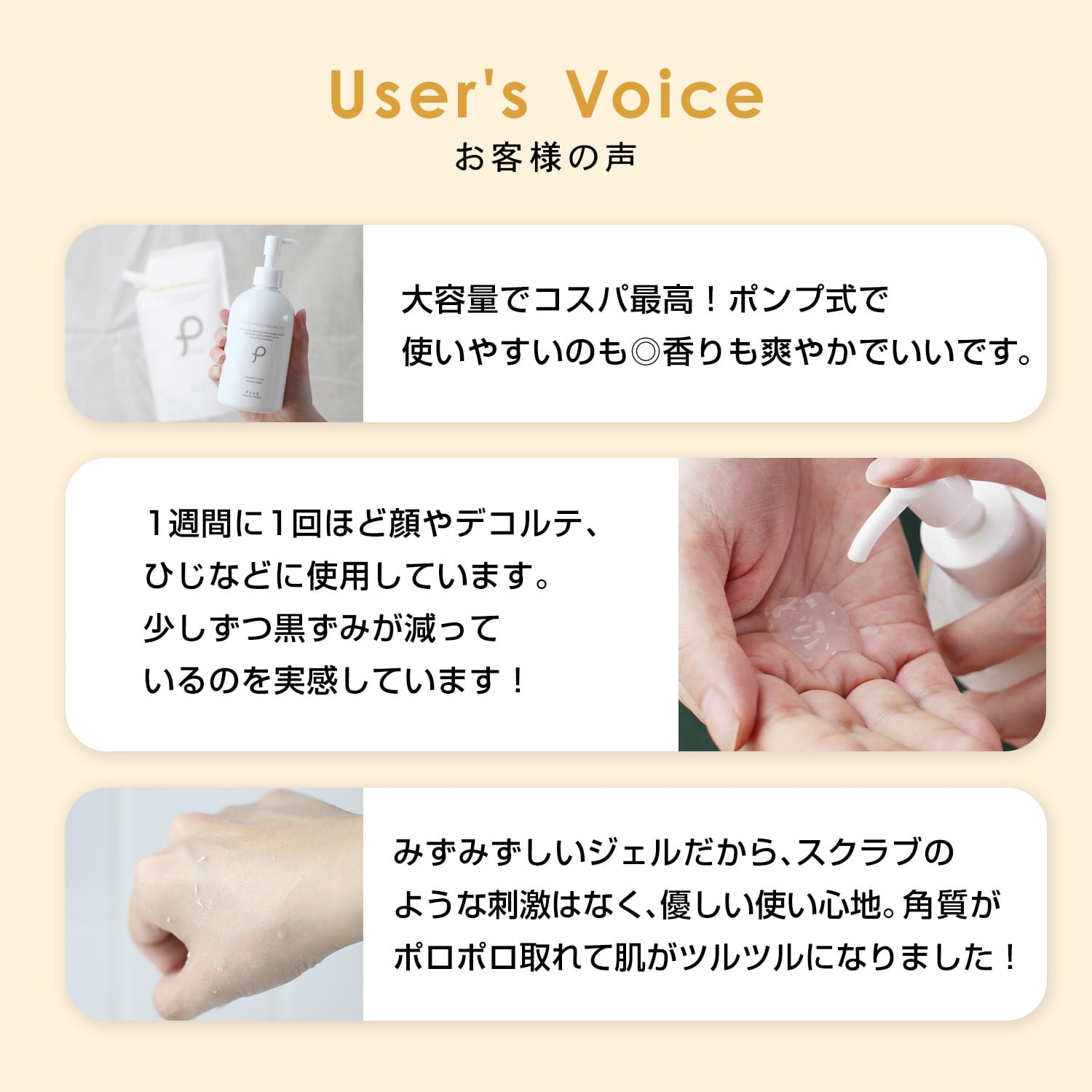 全身まるごとツルッツルのむきタマゴ肌!まろやかピーリングジェル。肌に負担をかけず、古い角質をやさしく滑らかにしっかりオフしてくれます。
