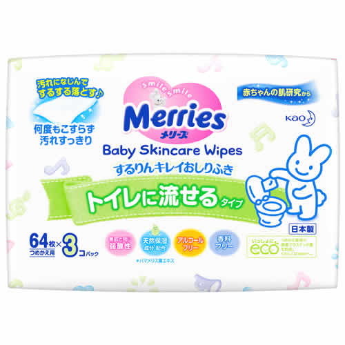 ◆トイレに流せるシート。天然保湿成分ハマメリス葉エキスで肌がうるおう。