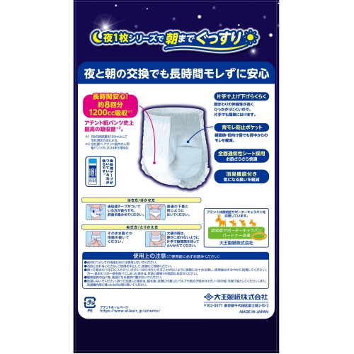 ◆1200cc吸収。アテント紙パンツ史上最高の吸収量※