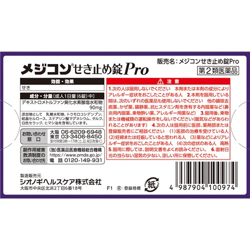 ◆メジコンせき止め錠Proは、せき中枢に直接作用し、つらいせきの症状にすぐれた効果を発揮する非麻薬性のせき止め薬です。