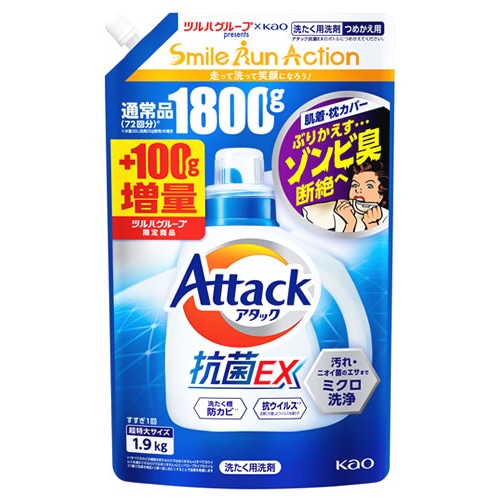 花王 アタック抗菌EX 超特大サイズ つめかえ用 (1.9kg) 詰め替え用 ツルハグループ限定増量品 液体洗剤 洗たく用洗剤