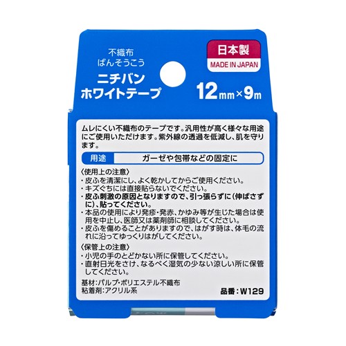 《セット販売》 ニチバン ホワイトテープ (1個)×3個セット 12mm×9m 紙テープ サージカルテープ 固定用テープ