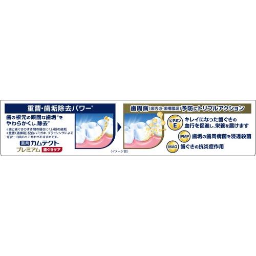 薬用成分:フッ化ナトリウム【フッ素】、イソプロピルメチルフェノール【IPMP】、トコフェロール酢酸エステル【ビタミンE】、グリチルリチン酸モノアンモニウム【MAG】