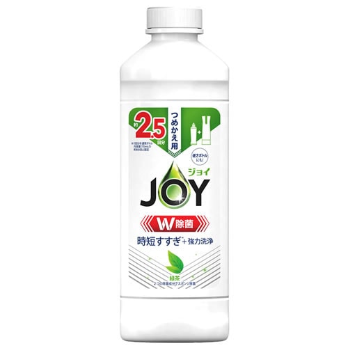 ぬれたスポンジに適量(1-3mL程度)を出して使用。お皿や汚れの量、種類によって調整(小さじ1杯は約5mL)。過度な汚れは紙等で拭き取ってから洗剤を使用。