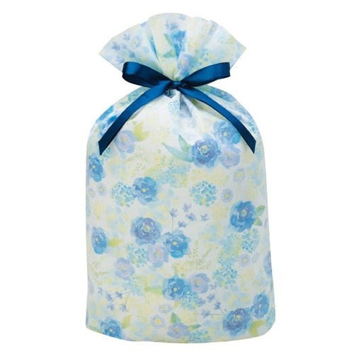 爽やかなブルーの花柄が散りばめられ、イラストと同系色のサテンリボンが付いています。